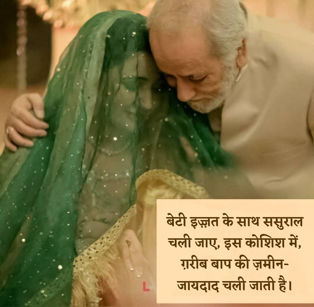 इस कविता का संदेश यह है कि अमीर बाप, अपनी बेटी की शादी में कुछ लाख रुपये ख़र्च करके, विरासत में मिलने वाली बड़ी रकम को "हड़प" कर जाता है। दूसरी तरफ़ अगर कोई ग़रीब बाप दुनियादारी निभाने के चक्कर में बेटी को मिलने वाली विरासत से ज़्यादा ख़र्च शादी में करता है।