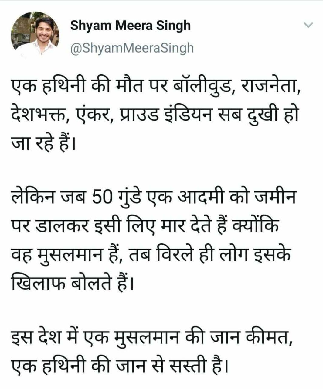 गुजरात का एक खूंखार कातिल बाबू बजरंगी याद है? जिसने आन कैमेरा कबूल किया था कि उसने दंगो में एक गर्भवती महिला के पेट मे तलवार डालकर बच्चे को तलवार की नोक पर टांग लिया था। उस बाबू बजरंगी के चाहने वाले लोग जब एक हथनी और उसके गर्भ मे पल रहे बच्चे के लिए आँसू बहाएंगे तो निसंदेह आँसू फर्जी ही लगेंगे।