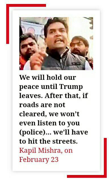 ये वही कपिल मिश्रा हैं जिन्होंने आम आदमी पार्टी के विधायक की हैसियत से दिल्ली विधानसभा में प्रधानमंत्री नरेंद्र मोदी के बारे संगीन इल्ज़ाम लगाए थे। कपिल मिश्रा के उस बयान से सम्बंधित वीडियो क्लिप आजकल काफ़ी वायरल हो रही है। कपिल मिश्रा बाद में बीजेपी में शामिल हो गये, उसके बाद से मुस्लिम विरोधी बयानबाज़ी करना उनकी पहचान बन चुकी है। दिल्ली दंगों से पहले की गई उनकी भड़काऊ बयानबाज़ी पर कोई एक्शन नहीं लिया गया।