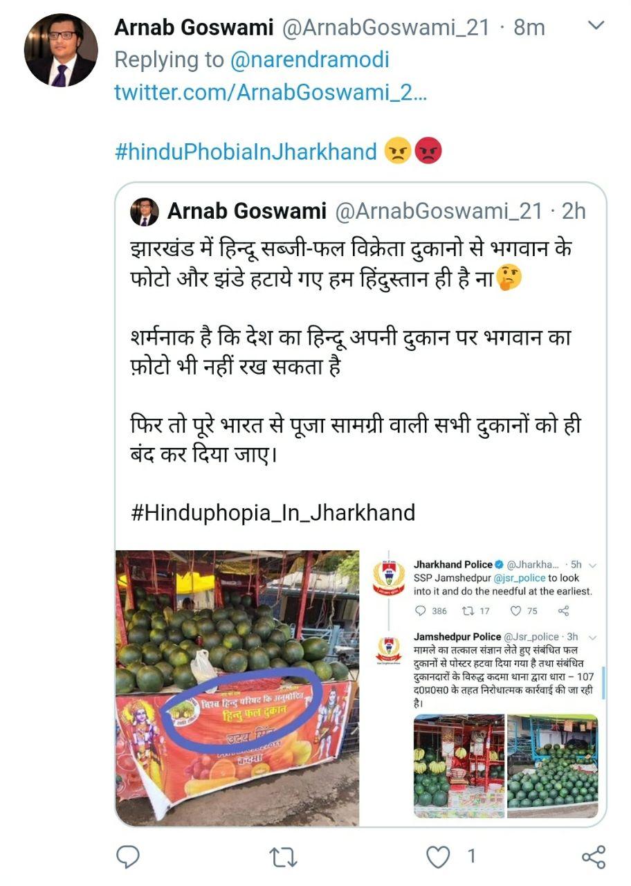 अर्णब गोस्वामी की प्रतिक्रिया : रिपब्लिक भारत वाले इन पत्रकार महोदय को मोदीजी के बयान से कितनी निराशा हुई, उनके दो ट्वीट्स में देखिये।