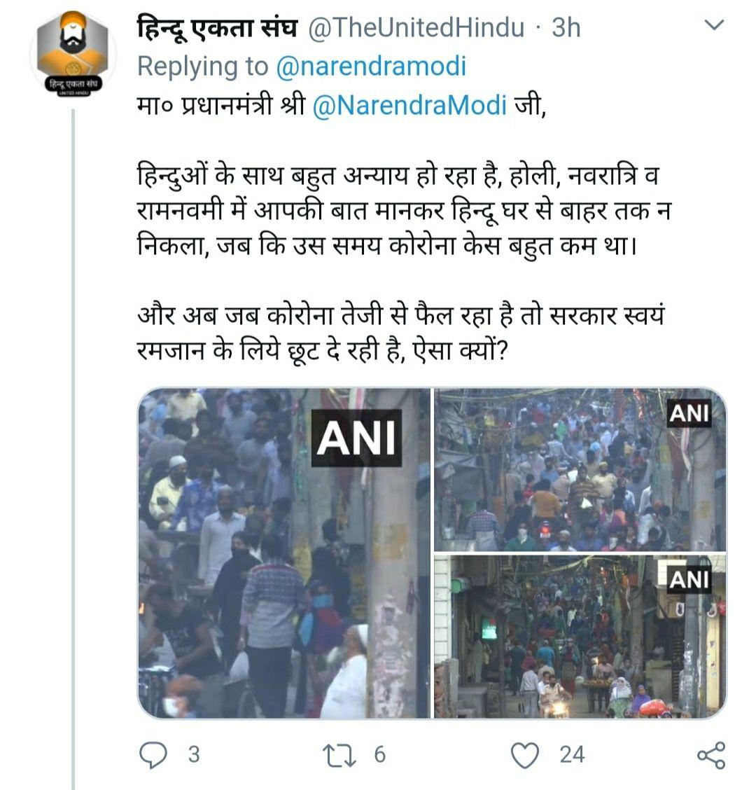 अब हिंदू एकता संघ का ट्वीट देखिये,