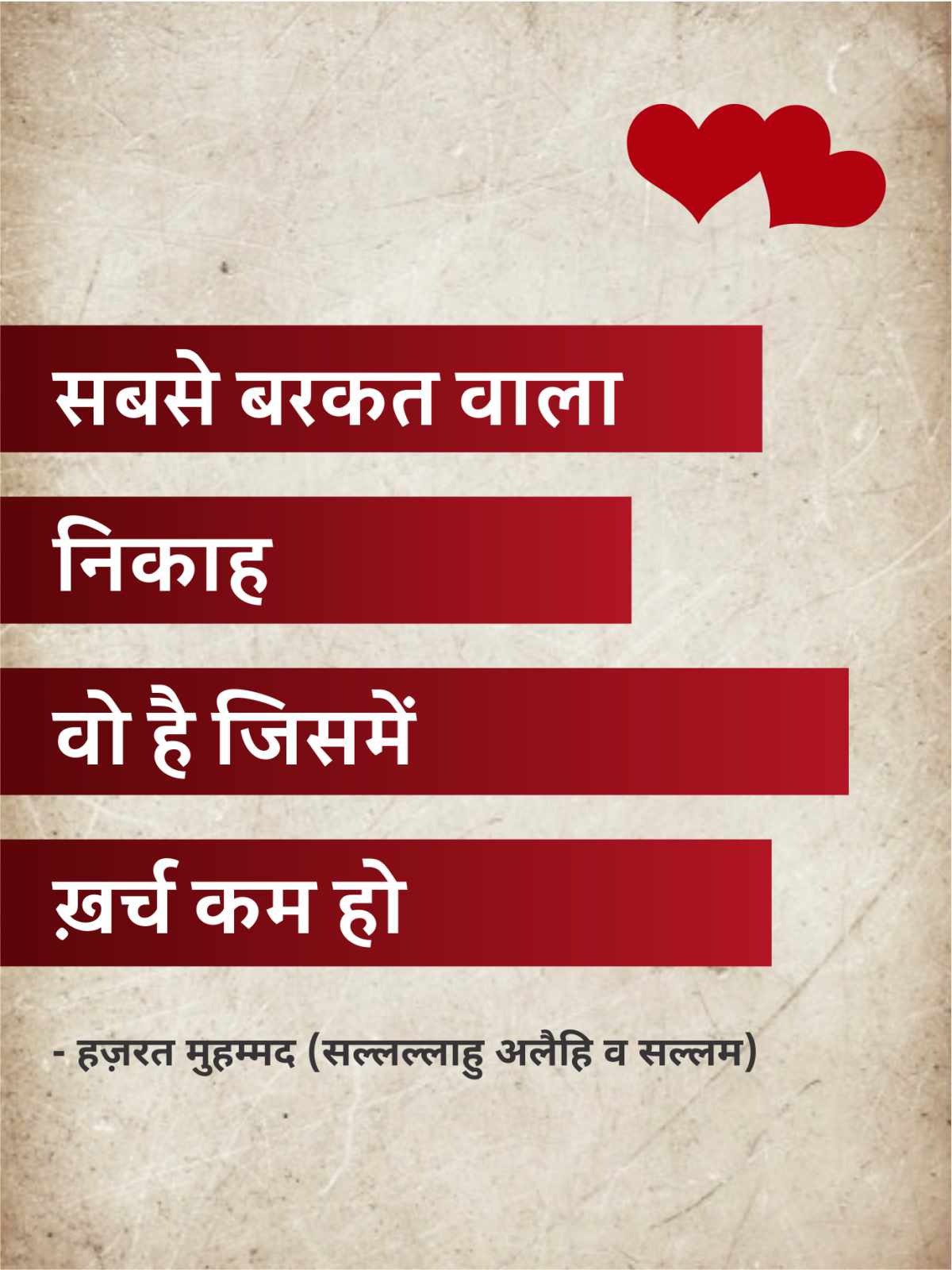 ★ कम ख़र्च में होने वाली शादियों को बरकत वाली कहकर इस्लाम ने शादी को सादगी से करने का हुक्म दिया है।