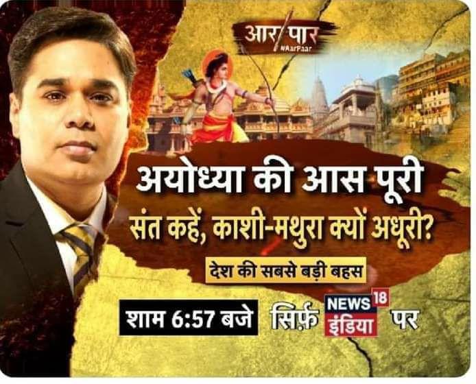 दूसरी बात, जिस शो में अमीश देवगन ने उक्त अभद्र टिप्पणी की उसका विज्ञापन पोस्टर देखिये। इसमें टॉक शो का शीर्षक लिखा है, अयोध्या की आस पूरी, संत कहें काशी-मथुरा क्यों अधूरी?