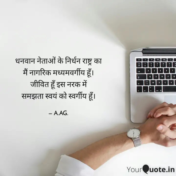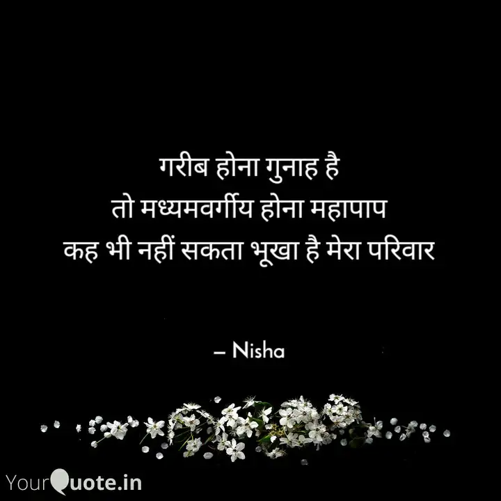 ग़रीबों की चिंता में हरेक सरकार ने कई योजनाएं बनाई। अमीरों की आय दिन-ब-दिन दोहरी रफ्तार से बढ़ी है। इन दोनों के बीच गुमनाम और अनजान बन गया है 'मध्यमवर्गीय परिवार' जिसके लिये सरकारों के पास न कोई ठोस योजना है, न कोई सहारा है, न वो किसी से मांग सकता है और ना वो किसी से लड़ सकता है। इन सरकारों को, जज़्बाती नारों बहकर, इसी मध्यमवर्गीय वर्ग ने चुना है और वही इनकी बेरुख़ी की सज़ा भी भुगत रहा है।